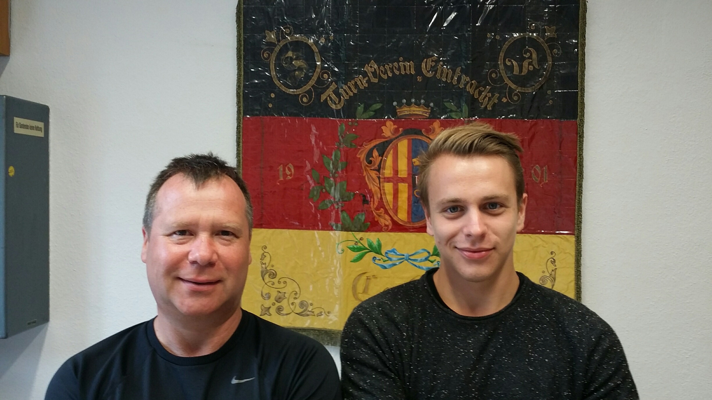 Marc Weidenfeller, (auf dem Foto rechts) ehemaliges TV-Mitglied aus dem Gerätturnen mit Wettkampferfahrung, ist wieder in den TV eingetreten und hat sich bereit erklärt als Übungsleiter im Bereich Gerätturnen männlich zu fungieren.