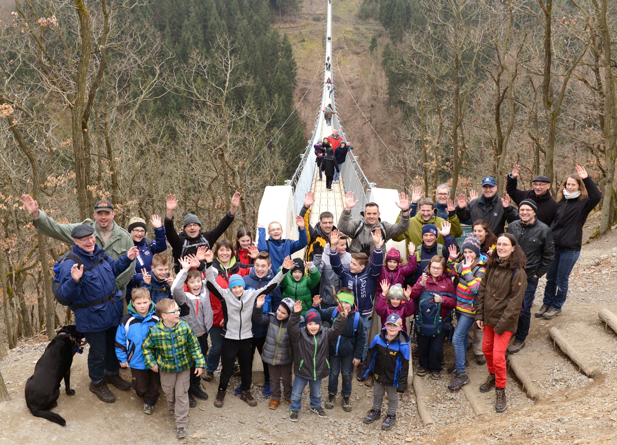 Die diesjährige Winterwanderung der Kampfsportler führte von Mörsdorf aus über die Hängeseilbrücke an der Geierley ins Gasthaus "Zur Buche" bei Mittelstrimmig. Etwas "ersatzgeschächt" durch die Kommunionsfeiern hatte die Gruppe dennoch viel Spaß an der Attraktion und an dem abwechslungsreichen Weg durch den Hunsrück.