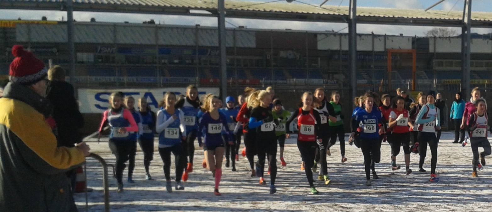 Über Nacht war auf den Anlagen des Trierer Moselstadions der Winter eingekehrt und hatte mit Schnee und gefrorener Unter- lage für die richtigen Crosslaufbedingungen gesorgt.