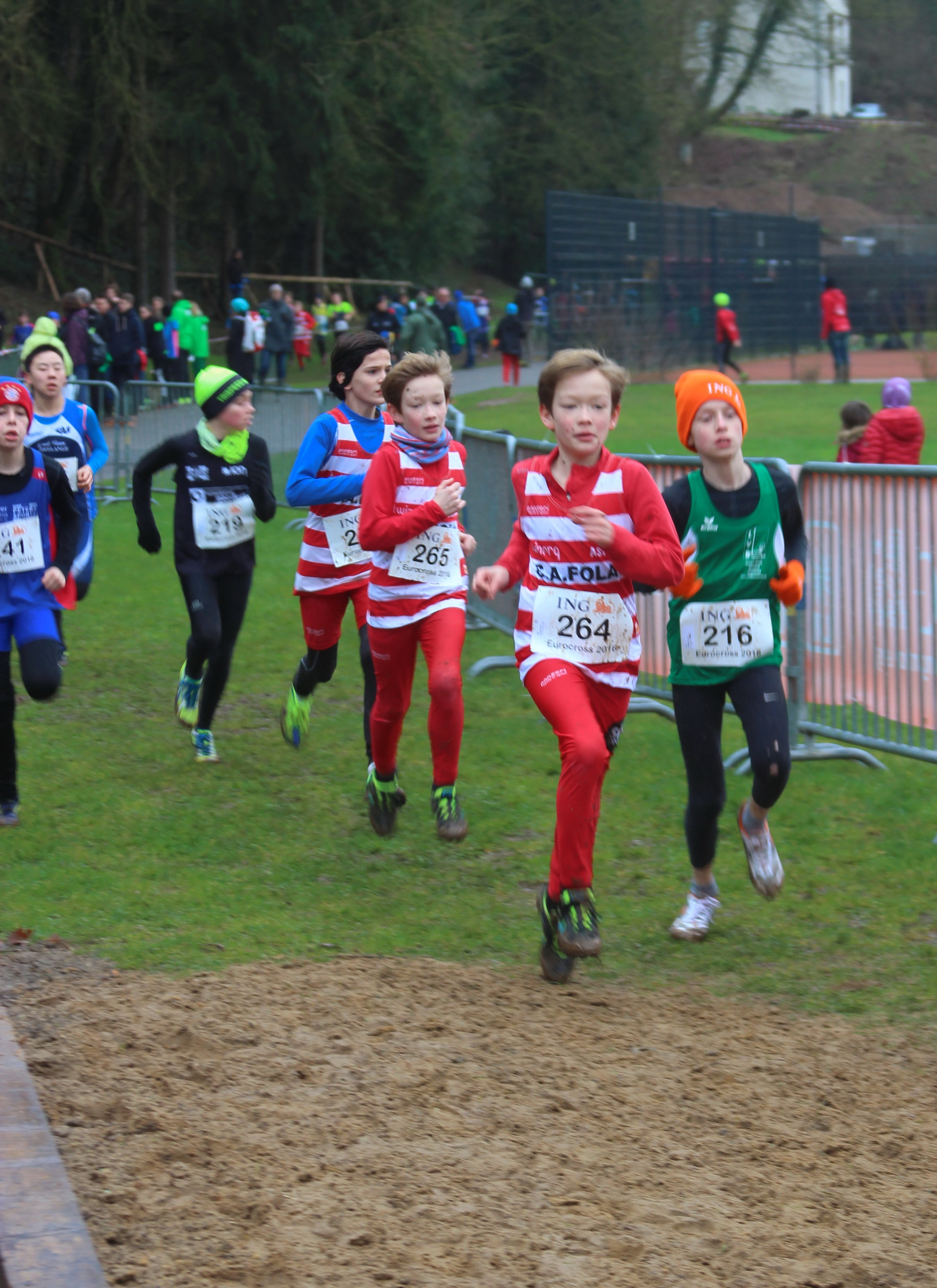 Auch wenn in diesem Jahr mangels einer luxemburgischen Mannschaft kein Vergleichskampf ausgetragen werden konnte, nutzen die Leichtathleten der Rheinland-Auswahl die Möglichkeit, sich der internationalen Konkurrenz beim Eurocross zu stellen. Bei dem renommierten Lauf sind auch im Jugendbereich schon rund ein Dutzend verschiedener Nationen vertreten. Nach vorherigen tagelangen Regenfällen war die Crosslaufstrecke sehr aufgeweicht und zusätzlich anspruchsvoll. Teilweise stand das Wasser knöcheltief auf den Wiesen und in den zu durchlaufenden Sandpassagen. Gleich beim ersten Rennen über 2075 m, der weiblichen Jugend U14, sorgten 2 Starterinnen des TV Cochem für Aufsehen. Dabei gelang Sarah Gräf (Jg. 2003) als Gesamtlauf 2. in 9,01 Minuten sogar der Sprung aufs Treppchen und auch Josi Balles (Jg. 2004) als 6. konnte in 9,34 Minuten in dem 50-köpfigen Teilnehmerfeld überzeugen.