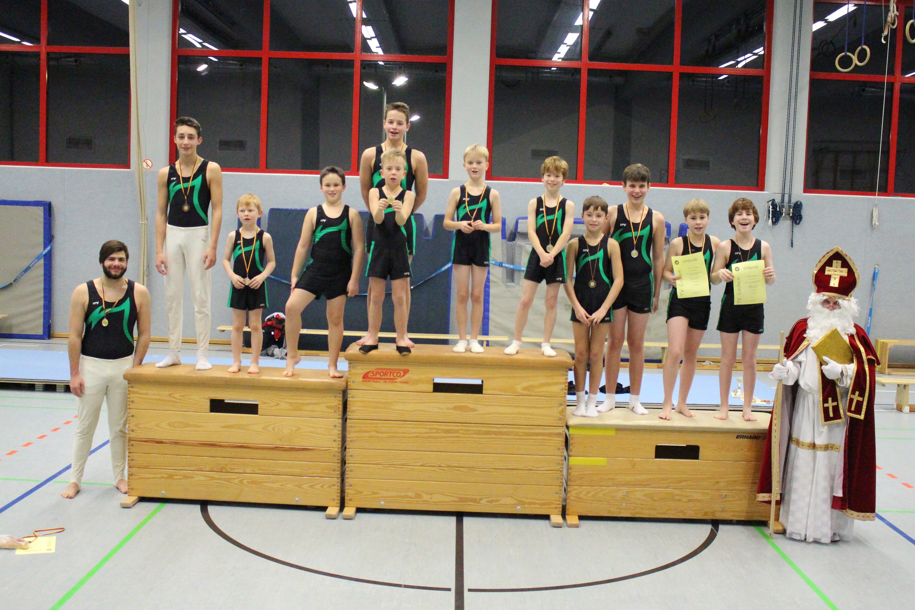 Alle Turner gaben Ihr Bestes und wurden mit hervorragenden Platzierungen belohnt. So erturnten die Turner des TV Cochems in allen Altersklassen Platz 1. Bei einer solchen Leistung durfte auch hoher Besuch nicht fehlen. So besuchte der Nikolaus den Wettkampf und hatte neben lobenden Worten aus seinem goldenen Buch die heiß ersehnten Urkunden und Medaillen dabei.