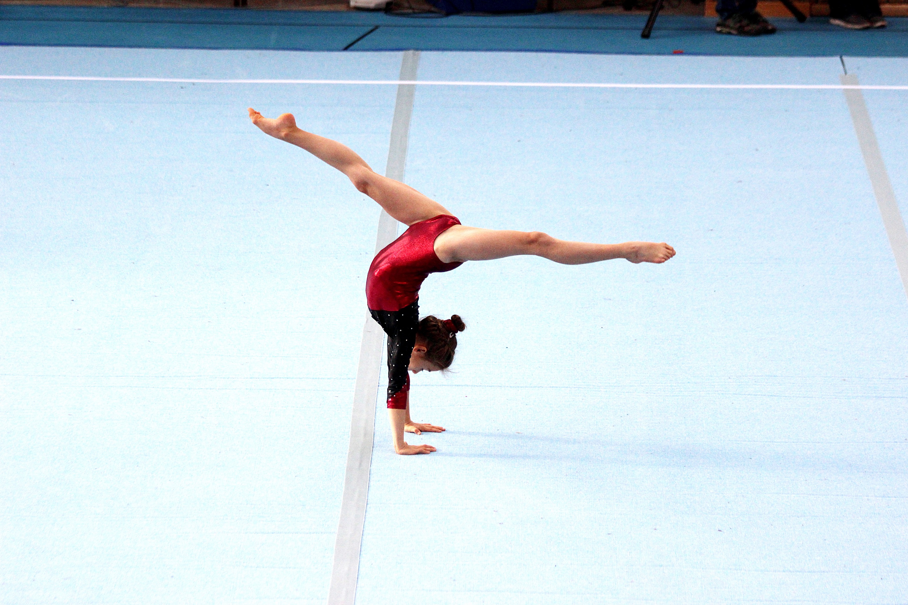 Die achtjährige Sarah Hoepp startete in der anspruchsvollsten Kategorie AK 7-10 Jahre. Das AK-Programm hat zum Ziel, die Sport-Elite herauszubilden. Die Mädchen trainieren hart und das Programm wird von Jahr zu Jahr immer schwieriger. Bereits die Übungen für die 9-Jährigen haben einen solchen hohen Schwierigkeitsgrad, dass das Erreichen der nächsten Altersstufe nur noch in den Turntalentschulen außerhalb des Turnverbandes möglich ist. Sarah Hoepp und ihre Mannschaft starteten in Ludwigshafen gegen die Pfälzer Turn-Talentschulen. Die Konkurrenz von professionellen Spitzensportzentren war wie erwartet unschlagbar. Unsere Mädchen erturnten mit 168,45 Punkten einen guten vierten Platz. Das Treppchen verpassten sie denkbar knapp: Lediglich 0,15 Punkte trennten sie von der drittplatzierten Mannschaft der Turntalentschule Haßloch.